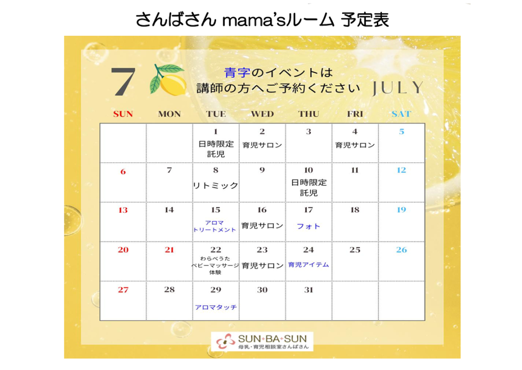 2025.7月 mama’ルーム予定表